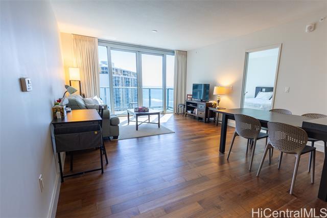 2bd / 2ba residence with lanai on the preferred ocean side of the waihonua condominium. this secured , pet-friendly building is in walking distance to ala moana center, ala moana beach park, and ward village. comes with two covered / assigned parking stalls and a storage locker. building amenities include: infinity pool, spa, bbq pavilion, club room with full kitchen, fitness center, resident's movie theater, two guest suites, and surfboard and bike storage. -