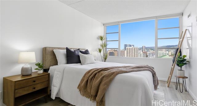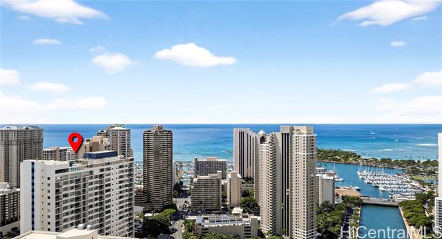 "shiny, new, and just for you! you're invited to live in this ravishing, renovated unit, high up on the 20th floor, because with city, marina/canal, ocean and sunset views, you're living large, in charge, and exactly how you deserve: in style! this unit has you enjoying the open concept layout you've been searching for, with updated, cool flooring so you can dance your heart out from the kitchen, dining room, living room, your bedroom with a view, and breathe in this aloha air on your refreshing lanai. and with the hoa fees covering the central ac, cable tv, electricity, other common expenses, sewer, water, and resort style amenities, you'll be living the dream. comfortably located in waikiki, this residence offers convenient access to nearby dining, shopping, and everyday essentials, along with the added bonus of a rooftop pool featuring panoramic views of honolulu. new appliances, covered assigned parking, an in-unit washer and dryer, and a secured, pet-friendly building has you feeling confident at home, knowing you made the smart decision, and in love with your life." -