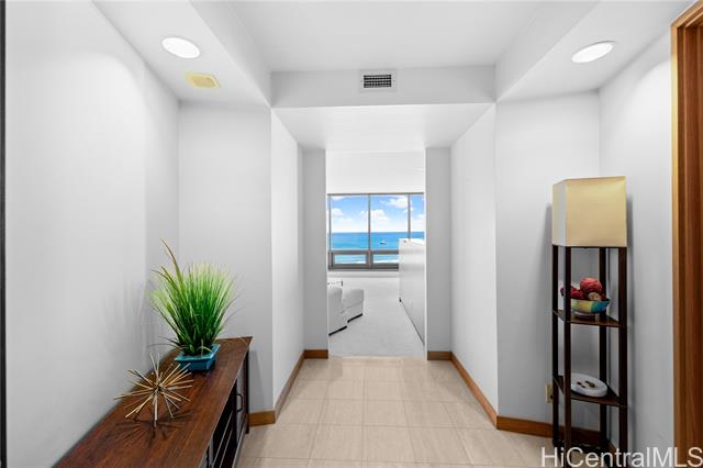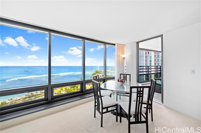 "very desirable high floor unit with fabulous ocean view! enjoy the parallel, unobstructed, breathtaking view as you enter. ocean and park view from each room. the spacious room has an ideal layout with privacy, with the living room and kitchen in the center and the primary bedroom and 2nd bedroom on either side. the building offers 24 hr security , ample guest parking, storage, tennis court, pool, etc. located just across from ala moana beach park and only a few blocks to dining, shopping, and entertainment spots. the property is priced below its property assessment value. the price is firm and will be sold "" as is""." -