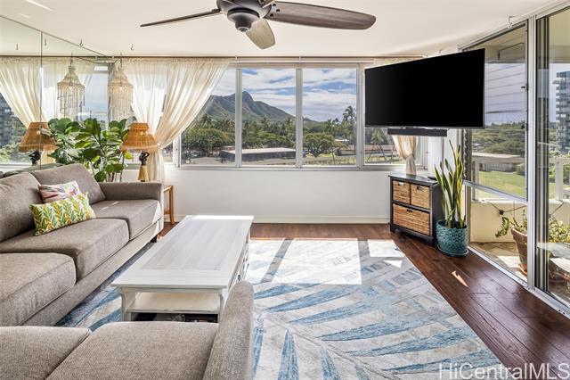 "rare gem! meticulously maintained corner-end 2-bedroom, 2-bath residence with two assigned parking stalls in the highly desirable diamond head vista — a true rarity in waikiki. enjoy breathtaking, unobstructed views of iconic diamond head, while the all-inclusive maintenance fee covers electricity, hot water, cable, wifi, sewer, and other common expenses, creating outstanding overall value. pride of ownership is evident throughout this beautifully cared-for home, featuring fresh paint, new hardwood flooring in the bedrooms and living room, and an open lanai perfectly positioned to capture that stunning view of the iconic diamond head. enjoy refreshing cross breezes and effortless indoor-outdoor living from your spacious lanai, plus the convenience of an in-unit washer and dryer. ideally situated on the quieter residential side of waikiki, you are just moments from world-famous beaches, the honolulu zoo, dining, shopping, and public transportation. diamond head vista is a secure, well-managed building offering a swimming pool, guest parking, an on-site resident manager, and 24-hour security. one of waikiki's most sought-after buildings!" -