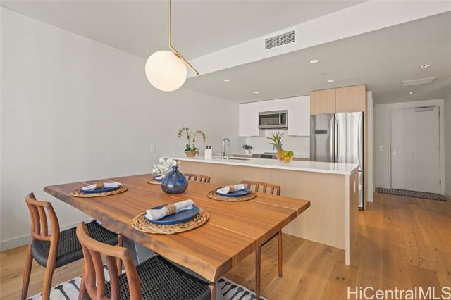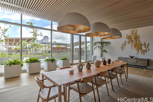 pristine, high-floor, largest 1/1 home at ae'o with ocean, mountain/city views! this turn-key unit has bosch stainless steel appliances, engineered hardwood floors, large laundry space, built-in closet system and motorized window treatments. list includes inspiration and shari saiki high-end furniture. it has a full-size parking stall on the 3rd floor. resort-like amenities include a 24/7 hosted front desk, lap and family pools, whirlpool, fitness center, locker rooms with a sauna and steam room, theater, playground, guest suites, outdoor bbq/dining cabanas, dining and media rooms with a chef's kitchen. ae'o has direct access to the largest 2-level whole foods market in hawaii. experience urban lifestyle in paradise with numerous dining & shopping options, ala moana beach park, ward theaters, ala moana shopping center, all in close proximity. condo is currently vacant and easy to show. -