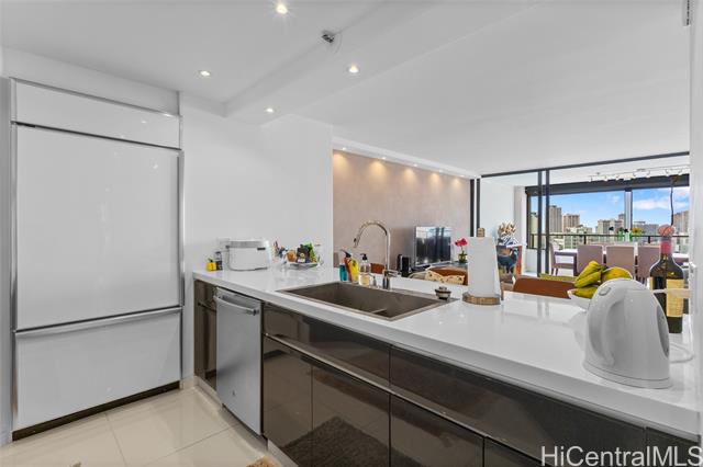 rarely available, thoughtfully updated 2-bedroom, 2-bath residence featuring an expansive open-air lanai/patio that extends the living space outdoors. the unit has been tastefully refreshed with smooth ceilings, new flooring, fresh interior paint, and fully renovated kitchen and bathrooms. spacious bedrooms and a full-size washer and dryer add everyday comfort and functionality. enjoy sweeping ocean and city views. the building has completed and fully paid-for plumbing upgrades, offering added peace of mind. with only four units per floor, residents enjoy enhanced privacy and larger floor plans. fire sprinkler system is in place.resort-style amenities include a heated swimming pool, tennis courts, fitness center, sauna, bbq, jacuzzi and recreation areas, putting green, ev charging stations, and 24-hour security. pet-friendly community with central air conditioning and excellent on-site management. maintenance fees conveniently include electricity, central ac, water, sewer, basic cable, and internet. truly move-in ready—just bring your suitcases and enjoy island living at its best. -