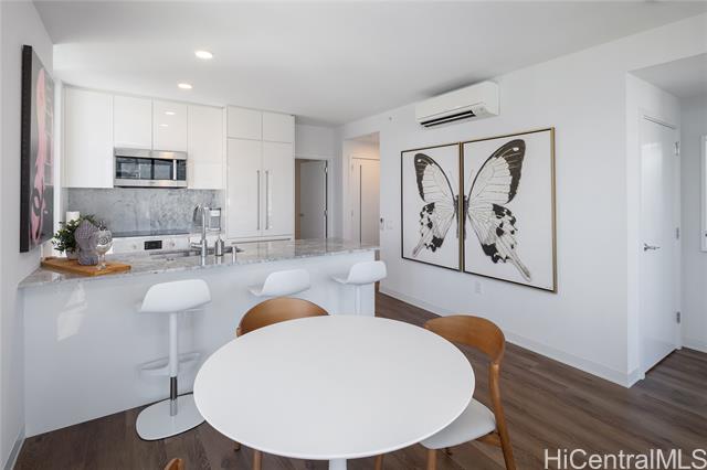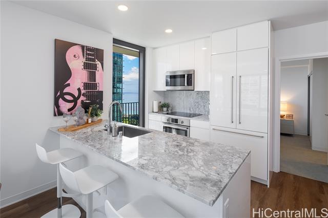 "like-new, fully furnished 2-bedroom, 2-bath corner residence with sweeping ocean and mountain views in award-winning a'ali'i at ward village. designed by internationally acclaimed scb architects with interiors by rottet studio, this high-floor home showcases floor-to-ceiling windows that frame stunning pacific blue horizons and lush mountain backdrops. the bright, thoughtfully designed open layout features refined modern finishes, bosch appliances, sleek cabinetry, and seamless indoor-outdoor living ideal for both everyday comfort and entertaining. residents enjoy resort-caliber amenities including a pool, state-of-the-art fitness center, yoga room, sky terrace with panoramic views, private cabanas, bbq areas, and beautifully designed indoor/outdoor gathering spaces. located in the heart of kaka'ako, just steps from whole foods, ala moana beach park, world-class dining, and luxury shopping, this move-in-ready residence offers elevated urban island living at its finest. ideal as a primary residence or sophisticated island retreat." -