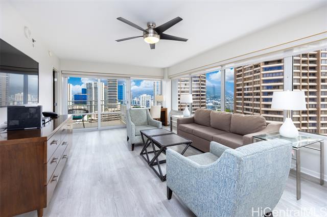 discover iconic island living at the gateway to waikiki; welcome to ilikai hotel & luxury suites #2209. this rare 2-bedroom, 2-bath, mauka-corner residence features a sophisticated floor plan designed to maximize views of paradise. the spacious 1,000 sq.ft. interior flows seamlessly onto two expansive lanais totaling 240 sq.ft., offering dynamic vistas stretching from the koolau mountains and urban honolulu to the pacific ocean and ala wai harbor. for added privacy, bedrooms are positioned at opposite ends of the suite. tastefully updated in 2014, the residence showcases laminate flooring, floor-to-ceiling windows, and an upgraded kitchen with stainless steel appliances, wood cabinetry, granite countertops, and built-in bar seating. this exceptional location places you moments from the hilton lagoon, sandy coastlines, dining, shopping, and entertainment. this unit is in the hotel rental pool. inquire for rental performance. -