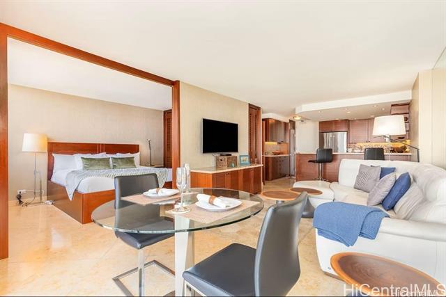 beautifully fully furnished 1-bedroom, 1-bath unit featuring hardwood cabinets, tile flooring throughout, and an open-concept kitchen. enjoy ocean and sunset views from the lanai, along with weekly friday night fireworks. ideally located in the heart of waikiki, just minutes from ala moana shopping center, dining, and popular beaches. short-term rentals are allowed, making this a great investment or vacation home opportunity. -