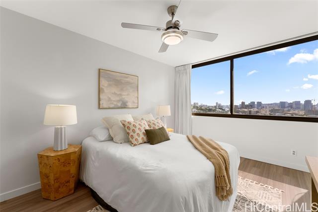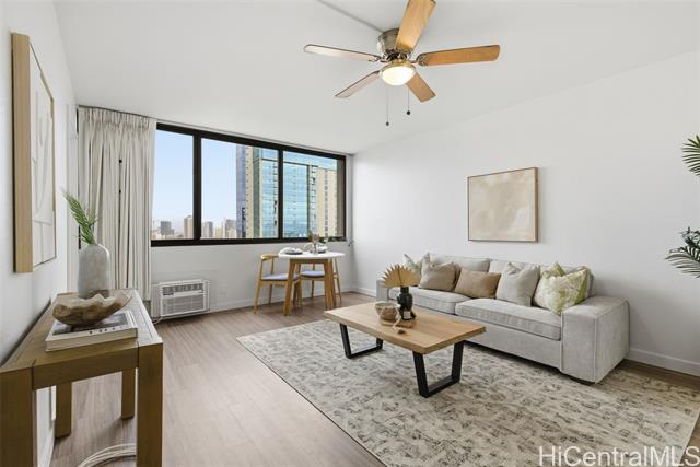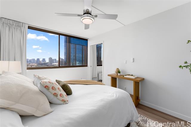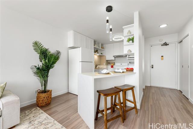 "enjoy the best of urban living—where comfort meets convenience—in the heart of downtown honolulu! this tastefully upgraded 1 bdrm/1 bath condo, ideally located in the preferred diamond head tower at kukui plaza, is a must-see. boasting beautiful mountain and city views, this unit features modern vinyl plank flooring, a refreshed bathroom, removal of popcorn ceiling, and a stunning renovated open kitchen with quartz countertops and a sleek waterfall edge. the open floor plan welcomes abundant natural light, creating a warm and inviting space. includes 1 covered, assigned parking stall. kukui plaza offers resort-style amenities including lush garden courtyards, tranquil ponds, a swimming pool, bbq areas, 24-hour security, and more. just moments from shopping, dining, and entertainment. live the convenient downtown honolulu lifestyle!" -