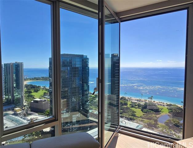 "a preferred high floor 2-bedroom, 2-bath diamond head side residence with 2 separate non-tandem parking stalls, one on the 3rd floor with a personal electric vehicle (ev) charger and nearby deeded storage, and one on the 5th floor. outstanding coastline, ocean, and city views with a unique large operable “bump-out ”living room window perfectly angled to take advantage of the cooling tradewinds. desirable split-bedroom floor plan with motorized shades throughout. light and bright engineered hardwood flooring, quality studio becker cabinetry, quartzite counter and vanity tops, stainless bosch appliances, and toto wash-lets and double sinks in both baths. immaculately maintained in “move in” condition. abundant amenities include a large fitness center, separate heated lap and wading pools, whirlpool, sauna, steam-room, bbq cabanas, party rooms, guest suites and more. ae'o is ideally located in the highly coveted kaka'ako ward village with direct access to the largest whole foods in hawaii and walking distance to restaurants, the world class ala moana shopping mall and ala moana beach park." -