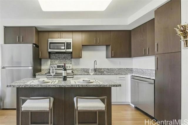 if you've been waiting for the right entry point into kaka'ako, this is it. priced like a reserved/affordable unit for first-time buyers or investors without the restrictions. this desirable corner end unit features a makai-facing orientation, capturing natural light, island breezes & gorgeous views in one of ward village's most dynamic communities. thoughtfully designed for comfortable urban living in the heart of kaka'ako. open concept, granite countertops, & stainless steel appliances. residents enjoy access to the expansive sky lanais—complete with co-working spaces, fitness center, yoga studio, theater, event rooms, bbq areas, and keiki play spaces—designed for both relaxation and connection. just moments from ward village's parks, dining, shopping, and the vibrant surrounding lifestyle offerings. some images have been virtually enhanced. -