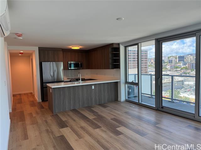 "located on the 12th floor of the park on keeaumoku, this brand-new, never-lived-in corner unit features the largest one-bedroom floor plan in the building, offering 751 sq. ft. of thoughtfully designed interior space. this spacious 1-bedroom, 1-bathroom residence includes one parking stall and an expansive 164 sq. ft. wraparound lanai, perfect for seamless indoor-outdoor living. the home is beautifully appointed with brand-new samsung appliances, a split lg a/c system, upgraded motorized blinds, and a generous walk-in closet, combining modern style with everyday comfort. residents enjoy access to exceptional resort-style amenities, including a 14th-floor infinity pool, multiple bbq stations, sauna, fitness center, yoga room, private movie theater, and three large party clubrooms. ideally located near shopping, dining, and everything honolulu has to offer, this home presents the perfect blend of luxury, comfort, and convenience." -