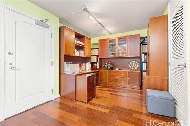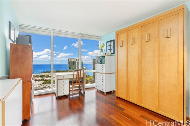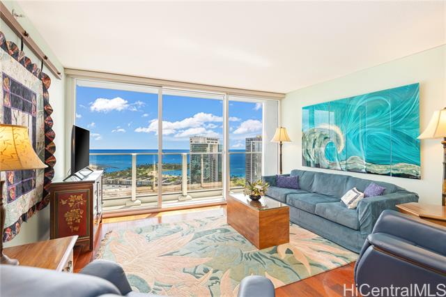 "public open house on 3/15, 3:00 pm to 5:00 pm. must see unit with great value showing the pride of ownership. desirable ""e"" model with 2-bedroom, 2-bath, ready to move-in features a bonus den with office furniture for a professional who works remotely from home. the open-concept layout is enhanced by floor-to-ceiling windows that capture panoramic views of diamond head, the harbor, and the ocean. residents have access to exceptional amenities, including 24/7 security, a swimming pool, a movie theater, putting greens, a playground, recreation areas, bbq cabanas, tennis and pickleball courts, a well-equipped fitness center, and guest parking. pet-friendly building conveniently located near ala moana center, ward village, dining, shopping, and beaches. unit comes with a storage and two side-by-side parking stalls near the elevator." -
