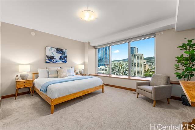 new listing! beautiful, expansive 3 bed, 3 bath corner-end residence with ocean, mountain views at one ala moana — one of honolulu's most sought-after luxury buildings. this spacious 1,800 sqft layout features open-concept living and is an exceptional value, as the best priced 3br at one. hardwood flooring and central ac. chef's kitchen with sub-zero refrigerator, wolf gas range, wine fridge, studio becker cabinetry and quartz countertops. dedicated laundry room with full-size washer/dryer, sink, storage. includes 2 parking. thoughtful separation of bedrooms and refined finishes throughout. primary suite offers mountain views, walk-in closet, soaking tub, separate shower. second bedroom ideal for office. third bedroom is en-suite with its own bath, walk-in closet. resort-style amenities: infinity pool, jacuzzi, cabanas, fitness center, sauna, theater, chef's kitchen, party room, guest suites, playground, dog park, putting green, all surrounded by lush landscaping. one ala moana is known for its design, privacy, and service with just 205 units. direct access to world-class shopping and dining, and near ala moana beach park. the perfect blend of convenience, quality and lifestyle. -