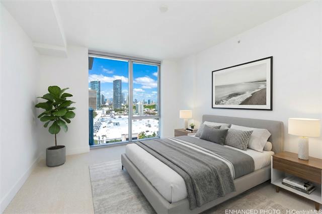 experience modern island living at azure ala moana, an ultra-convenient high-rise residence completed in 2021. this residence is positioned across from ala moana center and just two blocks from ala moana beach park, putting dining, shopping, entertainment, and beaches just minutes away. inside, a bright 2-bedroom, 2-bath floor plan is elevated by high-end features, including a designer kitchen appointed with bosch appliances and two-tone wood and white lacquer cabinetry. additional highlights include three split ac zones, sapphire pacific ocean views from the lanai, and a primary bedroom suite complete with two closets and a double vanity. recent upgrades include new luxury vinyl flooring and window coverings throughout. resort-style amenities feature multiple barbecue cabanas, a large pool with a hot tub, a fitness center, a movie theater, a dog park, guest suites, and more. capture this ultra-convenient island retreat at azure ala moana #1202. -
