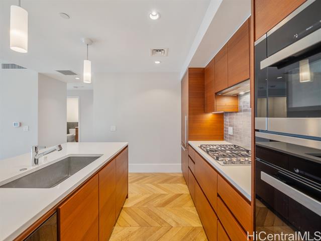 "experience elevated island living at anaha in the heart of ward village. this beautifully designed 1-bedroom, 1-bath residence at 1108 auahi st #1305 offers approximately 726 sq ft of interior living space with floor-to-ceiling windows showcasing stunning city, coastline, and ocean views. the open-concept layout features 9-foot ceilings, central ac, and modern finishes throughout. the sleek gourmet kitchen includes premium appliances, custom cabinetry, and elegant countertops, perfect for everyday living and entertaining. the spacious bedroom offers generous closet space, while the spa-inspired bathroom provides a relaxing retreat. residents enjoy resort-style amenities set across a spectacular 1-acre recreation deck, including a signature glass-bottom pool, hot tubs, tennis court, volleyball court, fitness center, golf simulator, sauna and steam rooms, private dining areas, bbq cabanas, theater room, dog park, guest suites, and 24-hour concierge service. one covered assigned parking stall included. just moments from whole foods market and the beaches of ala moana beach park. urban luxury meets island lifestyle." -