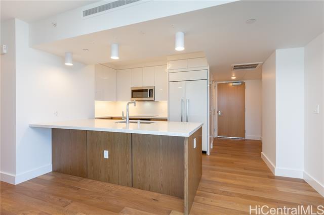 azure ala moana is a rare, one-of-a-kind offering -a true corner-unit 2-bed / 2-bath with three sides of expansive glass delivering sweeping mountain, city/west-sunset, & direct ocean views toward magic island. open kitchen is equipped with top-tier appliances and tasteful finishes that complement the bright, open living spaces. the unit features a ductless split air-conditioning system with a concealed indoor blower unit for efficient, quiet cooling without visible wall units. two assigned parking stalls provide added convenience for this highly desirable residence. located in a secured building, residents enjoy an attractive amenity package including guest suites, movie theater room, large party room, pool, hot tub, bbq cabanas, dog park, and fitness center. the building also offers friendly security staff and a beautifully appointed lobby to welcome guests. centrally located in midtown ala moana, this home offers immediate access to the best of honolulu: shopping, restaurants, hospitals, schools and more are all just minutes away. whether you're seeking an elegant primary residence or a refined island retreat, unit 2312 blends spectacular panoramic views w/ everyday convenience. -