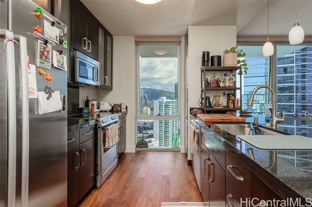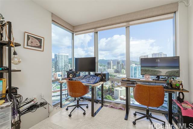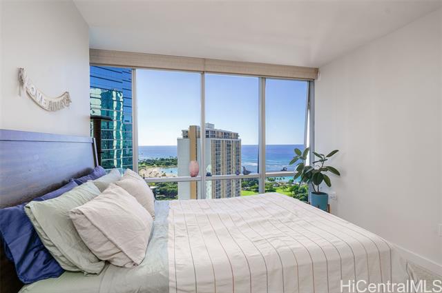 "experience elevated island living in this sophisticated three-bedroom, two-bath corner residence. floor-to-ceiling windows with motorized double shades fill the home with natural light and showcase ocean views from every angle. a spacious walk-in closet adds comfort and convenience. the gourmet kitchen features granite countertops, premium bosch appliances, and an expansive island—perfect for everyday living and entertaining. residents enjoy resort-style amenities, including an infinity pool, bbq cabanas, fitness center with weight and yoga studios, theater, and a club room with full kitchen. guest suites and ev charging stations add convenience. ideally located a short stroll to ala moana shopping center, dining, and medical services, offering ultimate urban island convenience. includes two of the most desirable parking stalls. luxury, location, and lifestyle—perfectly combined. tenant-occupied at $5,250/month through 6/28/26." -