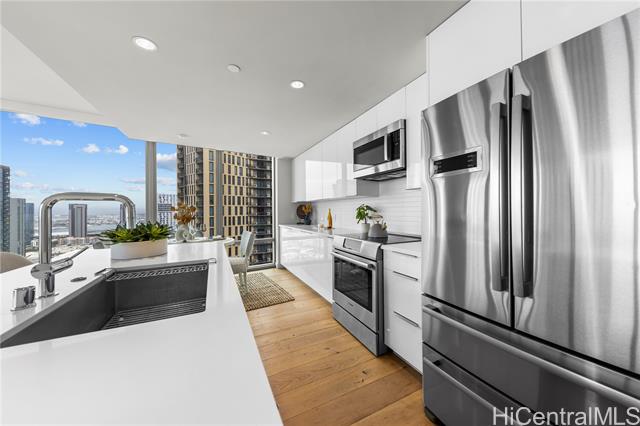 "this spacious 3-bedroom, 3-bath residence offers 1,327 sq. ft. of beautifully designed interior living space in a highly desirable location above whole foods. the open-concept layout features a bright and airy living room framed by floor-to-ceiling windows, showcasing breathtaking ocean and sunset views. abundant natural light fills the home, creating a warm and inviting atmosphere throughout. the modern kitchen is thoughtfully designed with premium bosch appliances, sleek finishes, and ample workspace—perfect for both everyday living and entertaining. a separate laundry closet adds everyday convenience. the spacious primary suite serves as a private retreat, complete with a large walk-in closet and a spa-inspired ensuite bathroom featuring dual vanities. this residence also includes the valuable bonus of an additional storage locker. residents enjoy an impressive array of resort-style amenities, including bbq areas, concierge service, exercise room, meeting room, patio/deck, swimming pool, recreation area and recreation room, resident manager, sauna, car wash stall, bike and surfboard storage, additional storage, and a trash chute for added convenience." -