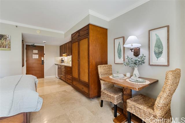 "beautiful boutique hotel with legal ""short term vacation"" rental! this building is sophisticated and classy and just the place people will want to return again and again as the hotel did a fantastic remodel and update in 2020 with attention to detail like lemon water by the pool, updated hallways, doors, and lanais. large studio includes a large kitchenette, bathroom, and lanai and is conveniently located on the same level as the pool and gym. the lobby has a stunning mezzanine that includes a bar, sitting areas and private meeting spaces with a luxurious vibe. unit is in luana waikiki's hotel rental pool but it is an optional choice to each owner. lanai overlooks waikiki parade route, a real delight! perfect vacation rental that you will want to use yourself." -