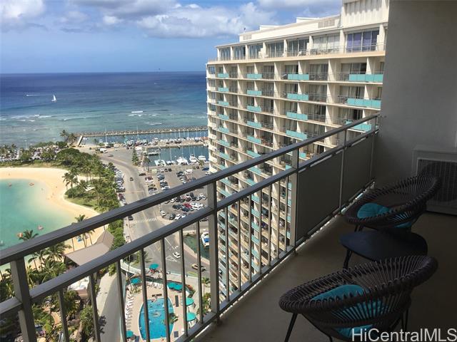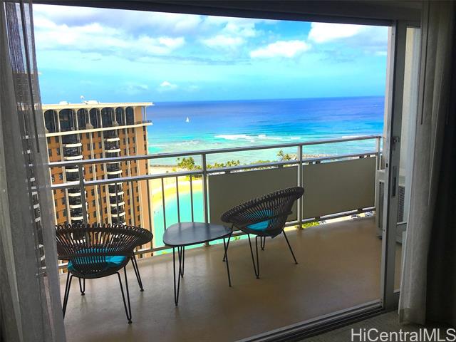 "ideal property for both investment and owner use! higher floor unit, which totally renovated in 2014 and has been managed by ilikai hotel and luxury suites as hotel condo. this 500 square foot unit is furnished with upscale appliances and modern fixtures that exude the style and comfort you would expect to find in a luxury hotel suite, well maintained and generate good income. special features include kitchen equipped with stainless steel appliances, designer bathroom with granite countertops and tiled showers, 40-inch flat screen televisions, and split ac. you can enjoy sweeping and dramatic views of the duku kahanamoku lagoon from this spacious 120 square foot lanai." -
