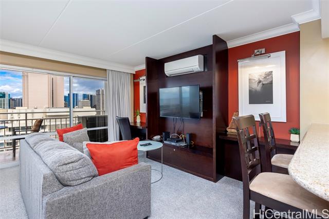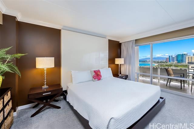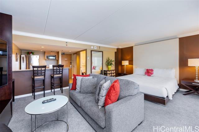 perfectly positioned at the entrance of waikiki, just blocks from iconic waikiki beach, the hilton lagoon, and premier shopping and dining, the ilikai hotel & luxury suites stands as one of honolulu's premier landmark destinations. inside this open-concept, high-floor studio residence, you'll be captivated by sweeping panoramic views of the ala wai harbor, pacific ocean, and ala moana beach park, offering a dynamic perspective of paradise. the well-kept space offers previous updates, including bespoke built-ins, an updated kitchen and bathroom, new carpet, and more. the ilikai hotel hosts an array of on-site shopping and dining options, features two swimming pools, lounge spaces, and more. this turn-key package presents a superb opportunity for primary residents, part-time owners, and investors. don't pass up this opportunity to secure your place in one of hawaii's most iconic destinations. shows as 1 bedroom in tax record but the wall divider has been removed. listing includes enhanced, zoomed-in photos. -