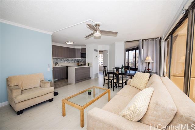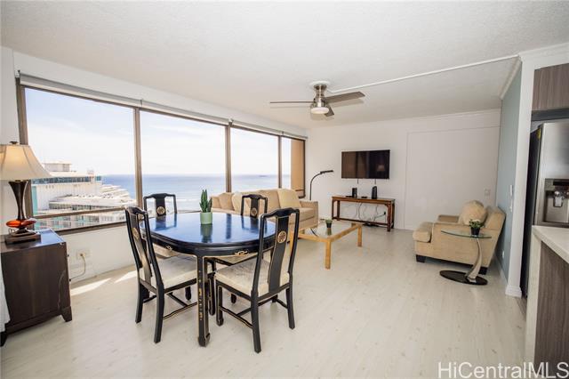 "are you waiting for ocean-view unit in discovery bay? here's your chance to own popular 09 stack! this fully renovated large 1-br 1-ba unit has wall-to-wall picture window across the living room that brings in lots of natural light. enclosed lanai can be office space, your semi-outdoor dining spot, or place just to relax after busy day. bathroom can be access from both hallway and bedroom in case you have guests to your home. close to many restaurants, coffee shops, beaches, ala moana center, and central waikiki district, this is a great place as your primary residence, vacation home, or a rental. unit comes with 1 parking stall, and cat friendly. *the apartment is 96.893% fee simple and 3.107% leasehold (lease rent: $13.63/mo) with the option/right to purchase the remaining leased fee interest prior to expiration of lease; the lease rent is known for remaining term of the lease and the price of the remaining leased fee interest will be the appraised value at time of the purchase.* first showing starts on april 8." -