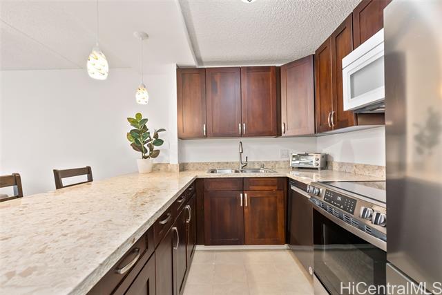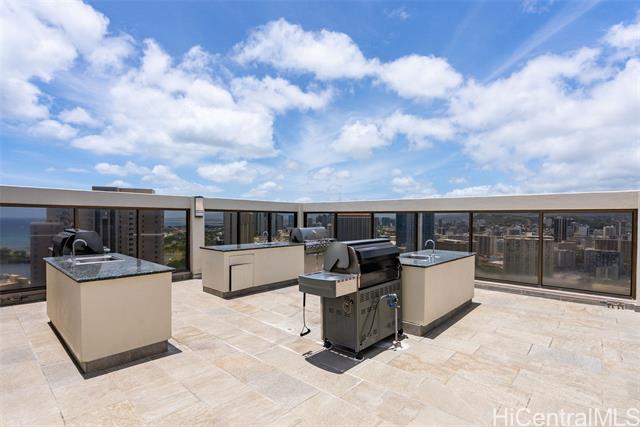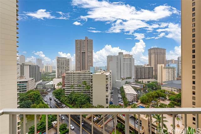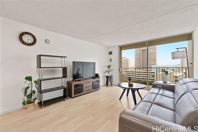 "this well-maintained 1-bedroom, 1-bath leasehold unit offers an open-concept layout and a private lanai with views of waikiki's vibrant atmosphere, and includes a new range/oven and dishwasher. the unit also comes with one parking space and a storage locker. residents enjoy a rooftop deck with panoramic ocean-to-mountain views, featuring a pool and bbq areas along with a fitness center, yoga/stretching room, and sauna. the pet-friendly building offers 24-hour security, and the maintenance fee includes central a/c and other utilities. priced to be sold on an ""as-is"" condition." -