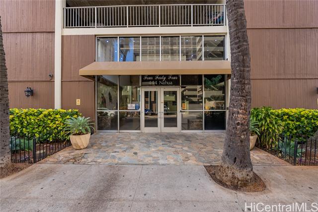 live, relax, and enjoy the waikiki lifestyle from this well-located 1-bedroom condo. 1-bedroom, 1-bath with 1 covered parking stall in the heart of waikiki at 444 nahua. desirable stack with views of the ala wai canal, golf course, city, and mountains from the covered lanai. functional layout with in-unit washer/dryer and the convenience of secured entry and keyed elevator access. enjoy great building amenities including pool, sauna, exercise room, bbq area, resident manager, and security. just minutes from waikiki beach, international market place, world-class dining, shopping, and entertainment. excellent opportunity for an owner-user, second-home buyer, or investor seeking a centrally located waikiki property. unit is currently tenant occupied and sold subject to existing lease. -