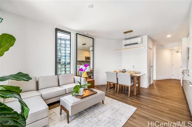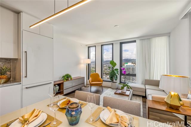 this gorgeous and immaculate high floor residence comes with more than $100,000 of upgrades including its own ev outlet for the unit's parking stall, specious walk-in storage room (approx. 44 sq ft), two storage lockers all on level 6 conveniently located near the elevator, and developer's original turn-key package crafted by renowned interior designer lauren rottet at rottet studio! enjoy cool breezes, panoramic mountains, and city views. the fresh vibrant interior features contemporary elegant finishes throughout. natural stone countertops with full-height backsplashes, bosch kitchen appliances, beautiful flooring in the living room and walk-in closet in the bedroom. stylish amenities include a rooftop sky deck with breathtaking ocean view, fitness center, yoga room, resort style pools, jacuzzi, private cabanas, bbq areas, indoor/outdoor lounge, dog park, children's play area and more. it is pet friendly! close to the whole foods market, restaurants, shops, parks, kewalo boat harbor and ala moana beach park. -