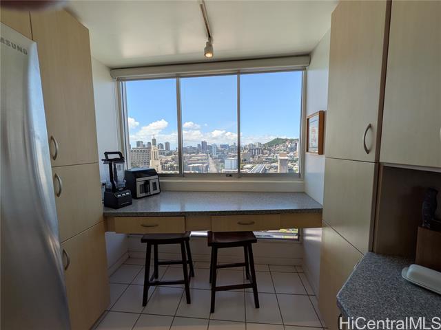 location, location, location. the banyan tree plaza is centrally located near the university of hawaii, major private schools and medical facilities. the corner end unit has panoramic views looking at the central union church grounds, scenic mountains and shriners hospital to sunset views towards the west. this 2 bedroom 2 bath 2 covered parking unit was renovated a few years ago with new kitchen and bathroom counter tops and cabinets. this unit has one of the largest living areas in the building with 1556 sf. the building has great amenities like a resident manager's office, secured parking, security, 20 guest parking, a salt water pool, bbqs and more! the building has completed the repiping process and the owner has paid off the special assessment. -