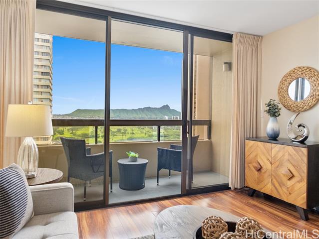 this beautiful 2-bedroom, 2-bathroom unit offers breathtaking views of diamond head and the ala wai golf course from every window. the spacious interior features ample closet space throughout, providing both comfort and convenience. the unit includes a lanai for indoor/outdoor living, washer and dryer, along with one covered parking stall. residents enjoy resort-style amenities, including a swimming pool, sauna, spa, putting green, tennis courts, pickleball court, bbq area, recreation room, and car wash facilities. maintenance fees (hoa) cover electricity, central air conditioning, water, sewer, hot water, basic cable, and internet. iolani court plaza is equipped with a full sprinkler system and fire alarms for added safety, as well as backup battery power to support essential services during outages and emergencies. don't miss this opportunity to own this highly desirable unit in iolani court plaza! -