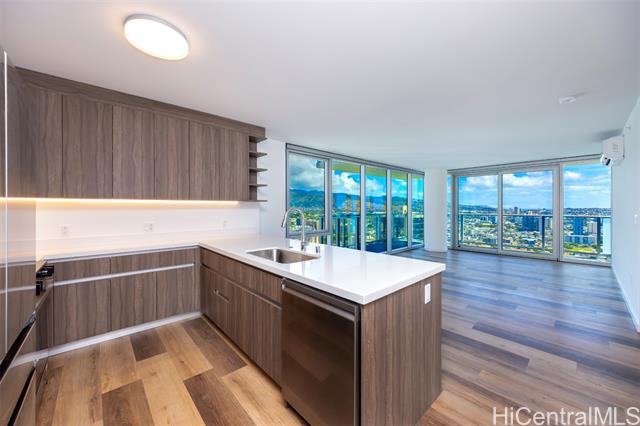 the park on keeaumoku is honolulu's newest high-rise destination, just completed in q4 2025. this high-floor, mauka-corner 2-bedroom, 2-bath residence situated on the 39th floor of the rycroft tower enjoys stunning diamond head, pacific ocean, tranquil kookau mountain and urban honolulu views from the living room, wrap-around lanai, and both bedrooms. features include a contemporary kitchen with quartz countertops, stainless appliances, and built-in bar seating, luxury vinyl plank flooring, modern fixtures, plus a primary bedroom with a walk-in closet and double-vanity ensuite bath. enjoy on-site resort amenities including an infinity-edge pool and hot tub, ample pool seating and cabanas, multiple open and covered barbecue pavilions, an exercise gym, yoga studio, meeting room, movie theater, co-working space, and much more. exceptional island living meets unforgettable views - welcome home to the park on keeaumoku #3901r. listing includes enhanced photos. -