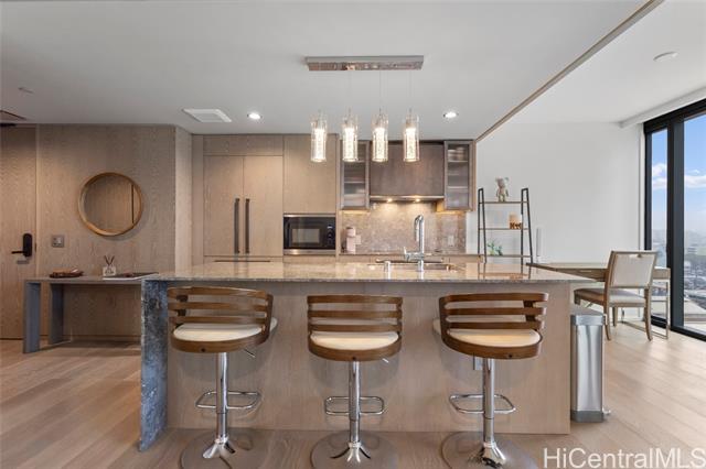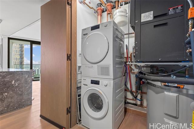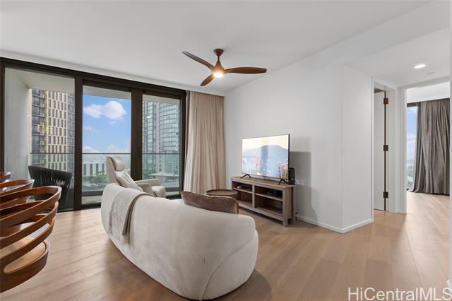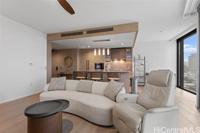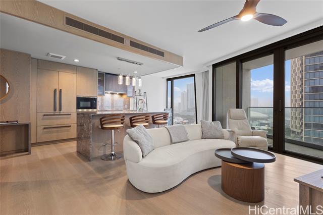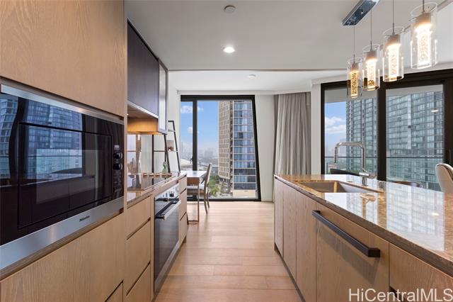 experience the heights of urban sophistication in the heart of ward village. this 2-bedroom, 2-bathroom residence blends organic forms with modern luxury. elegant 9-foot+ ceilings and floor-to-ceiling windows create a sense of dramatic volume, framing cinematic views of victoria ward park and the pacific horizon. the interior features warm hardwood flooring and a gourmet chef's kitchen outfitted with a premium suite of miele appliances, custom cabinetry, and sleek stone countertops. the open-concept layout flows seamlessly onto a private lanai, acting as a bridge between your serene sanctuary and the vibrant energy of kakaako. residents enjoy world-class, resort-style amenities, including a lap pool, two whirlpools, a state-of-the-art fitness pavilion, and a grand social lounge. perfectly positioned in honolulu's most walkable neighborhood, you are steps from the flagship whole foods, elite dining, and ala moana beach park. koula demonstrates the perfect blend of architectural brilliance and island ease. book a private showing today! -