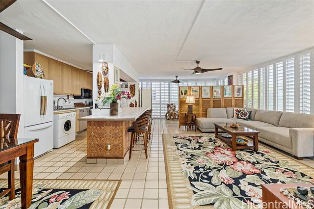 "experience timeless oceanfront living in this rare, extra-large one-bedroom, two-bath condo at the iconic kainalu on honolulu's coveted gold coast. located directly on a sandy beach at the base of diamond head, this spacious residence offers ocean views, cool tradewinds, and the soothing sound of waves just outside your window. the open layout features generous living and dining areas perfect for relaxing or entertaining. the primary suite has an en-suite bath, while a second full bathroom provides added convenience—an uncommon luxury in a one-bedroom unit that was formerly two-bedrooms and could easily convert back to two if needed. enjoy exclusive access to a private sandy beach, surf at tonggs, or unwind on the oceanfront lounge area. this secure, boutique building includes a coveted covered parking stall, easy walk up or elevator access, and a peaceful, quiet environment. just minutes from waikiki, kapiolani park, and the outrigger canoe club, kainalu offers the perfect blend of serenity and island lifestyle. a rare opportunity to own a spacious beachfront retreat in one of o'ahu's most prestigious neighborhoods." -