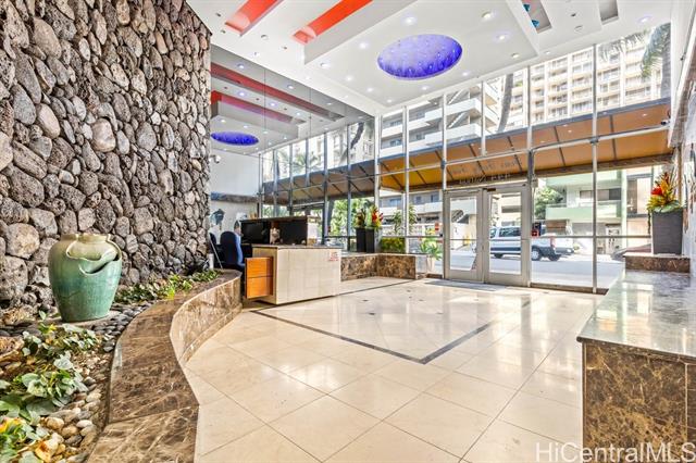 "beautifully updated 1-bedroom, 1-bath condo on the 8th floor with expansive views of the ala wai canal, golf course, and surrounding mountain range. this move-in ready residence features brand-new flooring throughout that was just installed this year and no popcorn ceilings, offering a clean, updated interior. the functional layout features an in-unit washer and dryer and one reserved covered parking stall is included. maintenance fees are all-inclusive covering electricity, basic cable tv, water, sewer, and internet, providing added convenience and predictable monthly expenses. residents enjoy resort-style amenities including a rooftop swimming pool, sauna, fitness center, bbq area, and rooftop terrace—perfect for relaxing or entertaining while taking in 360 degree panoramic ocean and island views. the building is pet-friendly, and offers security and an on-site resident manager, providing added comfort and peace of mind. ideally situated in waikiki across the street from international market place & target, just minutes from waikiki beach and various restaurants & shops, this central location offers strong walkability. vacant and ready for you to move in!" -