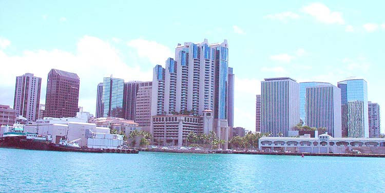 Harbor Court waterline. The fluted appearance of the west façade is elagant and serves to separate the private lanais.