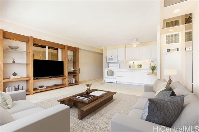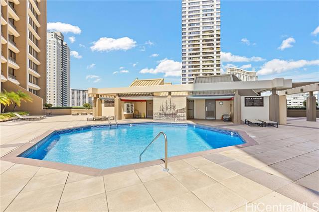 high floor large studio. condo has been remodeled in 2012. the unit is 96.893% fee simple and 3.107% leasehold. quarterly lease rent $22.82 or $7.61 per. mo. the aoao has the right and obligation to purchase the remaining leased fee interest before the lease ends on 12/31/2039. the 3.107% interest must be sold. the method to establish the price of the remaining leased fee interest has been agreed upon. great location for easy access to restaurants, convenience stores, ala moana shops, beaches, surf breaks, and on the bus and trolley line. seasoned building managed and board of directors with wonderful staff, 24-hour security, and all the amenities you need. amenities include heated swimming pool, bbq area, (2) exercise rooms, sauna, recreation/sunning area & whirlpool.  real property tax amount is based on the 2025-26 assessment.  commercial spaces on ground floors. photos with furniture virtually staged. -