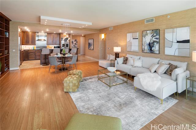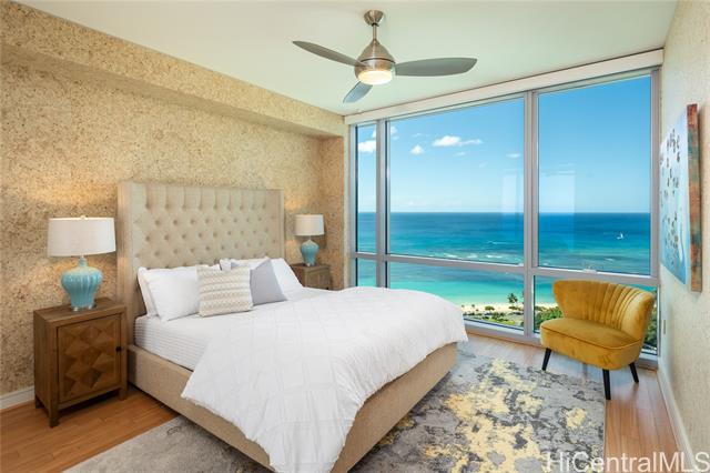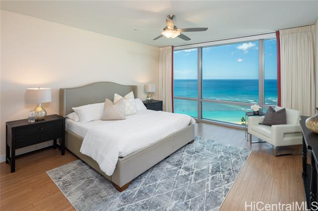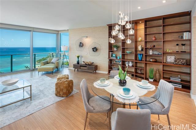 the hokua at 1288 ala moana is one of honolulu's finest luxury residences. experience stunning, unobstructed ocean and coastline views from this tastefully upgraded end unit with 3 parking stalls. this spacious, light and bright “b” unit offers high floor-to-ceiling windows, a nicely upgraded kitchen leading to an open living area with delightful design elements such as grass cloth wallpaper, art lighting, electric blinds and built-ins. the large primary bedroom has a generous walk-in closet plus a luxurious bathroom suite with a custom walk-in shower and vanities. the unit boasts three parking spaces (a single stall and 2 tandem stalls) and storage locker all on parking level 2, located near the elevators. the amenities at hokua are second to none, featuring resort-style indoor and outdoor amenities, including a fitness center, heated swimming pool, bbq areas, tennis court/pickleball courts, dog park, playground, guest suites, 24/7 security, and so much more. all conveniently located just one block away from ala moana shopping center, ward villages, restaurants, theaters, shops, the boat harbor and directly across from the world-famous ala moana beach park. -
