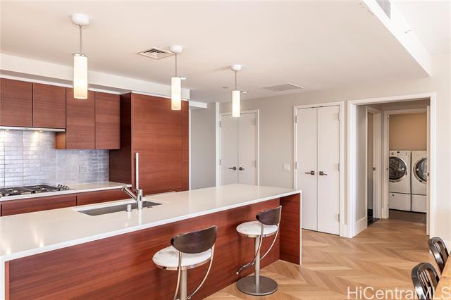 "experience refined luxury living at anaha, ward village's architectural masterpiece, with this stunning 30th-floor residence #3003. this spacious 2-bedroom, 2-bath home features expansive floor-to-ceiling windows that showcase breathtaking views of the pacific ocean, ala moana beach park, and the vibrant honolulu skyline. the gourmet kitchen is equipped with miele appliances, quartz countertops, and a large island—perfect for both casual dining and entertaining. the primary suite offers ocean vistas, a spa-like bathroom with soaking tub, and a generous walk-in closet. anaha is known for its world-class amenities, including the iconic glass-bottom swimming pool, state-of-the-art fitness center, private dining rooms, golf simulator, theater, and full concierge services. located in the heart of ward village, you're just steps away from whole foods, fine dining, shopping, and ala moana beach park." -