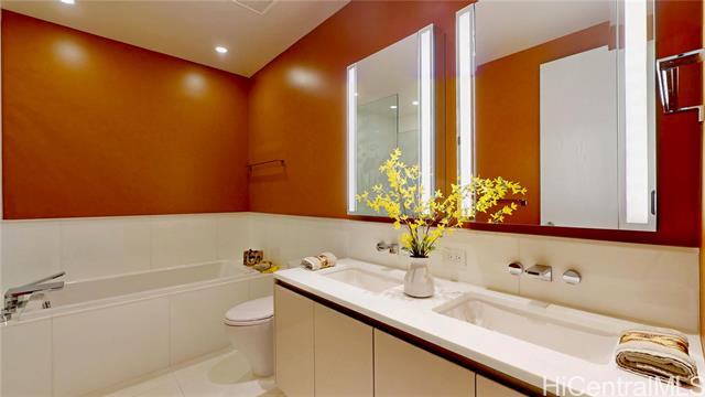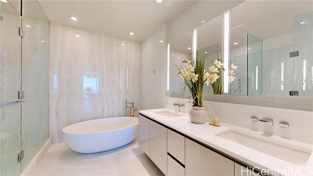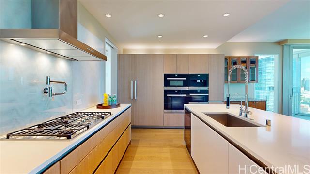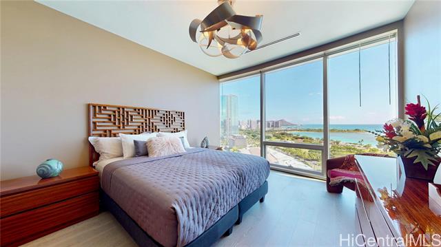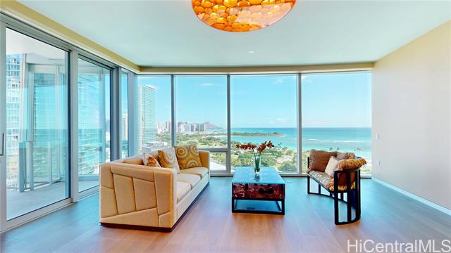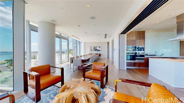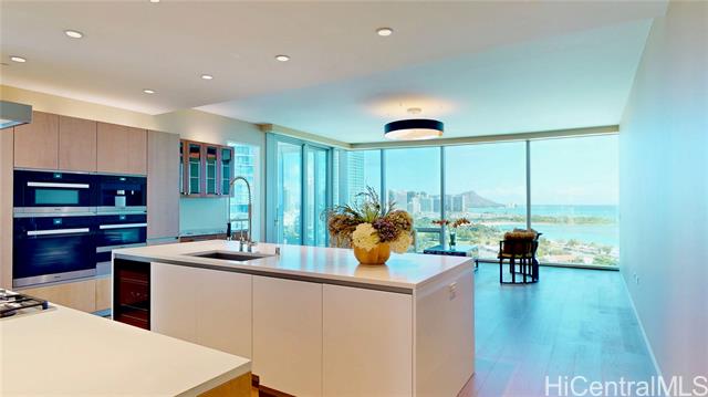 "elevated living awaits in this upgraded home, where soaring ceilings, sweeping views of diamond head, ocean, & vibrant skyline and curated finishes, effortlessly blends timeless elegance with modern comfort. a private foyer with venetian plaster walls & custom shelving sets a grand tone, while hardwood floors, designer cabinetry, complemented by statement lightings bring refined sophistication throughout. the chef's kitchen with premium miele appliances blends style & function. a serene primary suite, features custom walk-in & spa-like bath with a freestanding tub & advanced toto systems. third bedroom with built-ins serves as a guest suite, office, or creative space. world-class amenities, including a fitness center and yoga studio, infinity-edge pool with cabanas, steam and sauna rooms, golf simulator, private cinema, elegant dining areas, lounges, guest suites, library, signature sunset bar and valet service—delivering not just a home, but a lifestyle of unparalleled sophistication." -