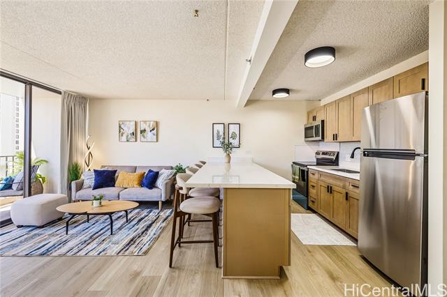 legal short-term rental. beautifully renovated and fully furnished 1-bedroom, 1-bath unit in the desirable waikiki sunset condominium. modern finishes, open layout, central a/c and private lanai with peek-a-boo ocean views, city and mountain views. an unassigned parking stall is also included for ultimate convenience. building amenities include heated salt water swimming pool, sauna, fitness center, bbq area and 24-hour security. located in the heart of waikiki, you're a stone's throw away from world-famous beaches, world-class dining, and endless shopping. whether you want to surf at sunrise, dine under the stars, or generate income while you're away, this waikiki sunset condo is the perfect blend of lifestyle and opportunity. perfect as an investment or vacation home. see video walkthrough. -