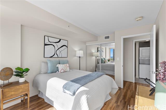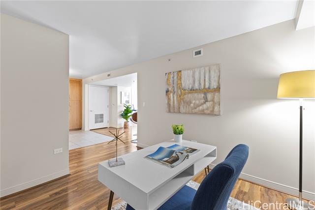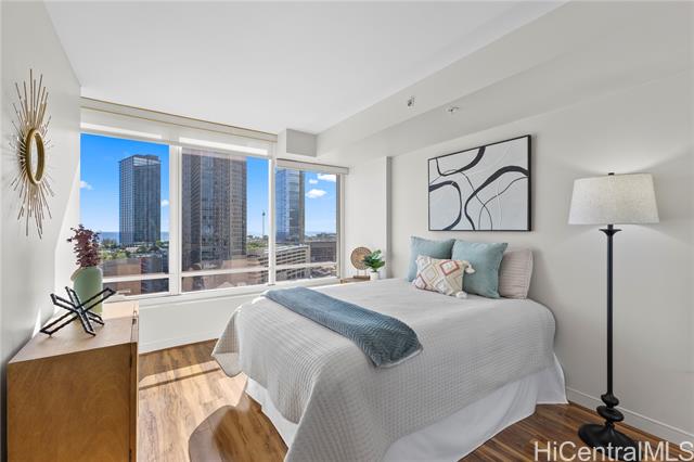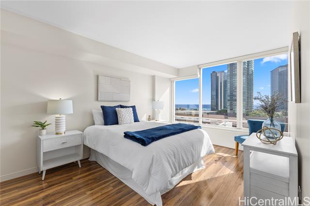"an ocean view residence in pacifica honolulu, where luxury meets affordability in the vibrant, trendy neighborhood of kakaako. this desirable 2-bedroom, 2-bath + den floor plan of over 1,000 interior square feet provides flexibility with an additional lounge area or office. features granite countertops, hardwood cabinetry, luxury vinyl & ceramic tile flooring. motorized solar shades and central ac will keep you cool. residents enjoy a resort-style experience on the 5th-floor recreation deck, featuring a swimming pool, jacuzzi, bbq cabanas, fire pits, a party pavilion, a spacious fitness center, saunas, two theater rooms, and multiple seating areas. pet owners will love the private, secured dog park, while 24/7 security guards, cameras, and secured access to the building ensure peace of mind. ideally located, pacifica honolulu is minutes from ala moana shopping center, ala moana beach, ward village, blaisdell center, whole foods, waikiki, and an array of dining options, including chai's, doraku, and blue tree cafe on the first floor near guest parking." -