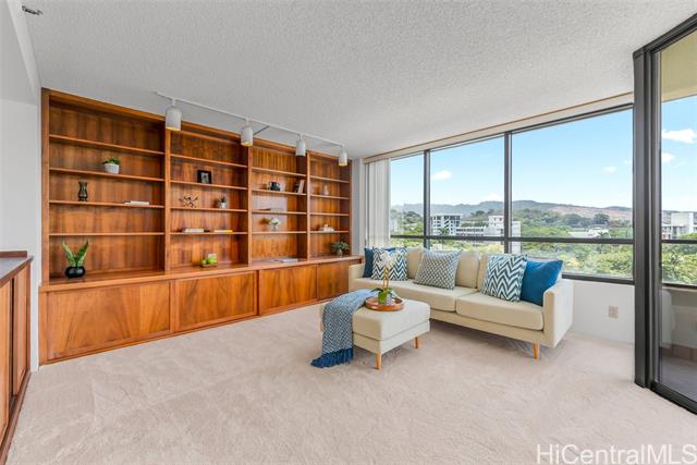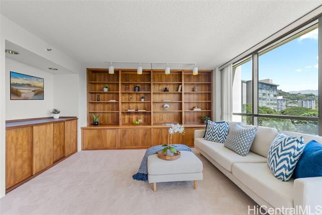 welcome to this spacious and beautifully maintained 2-bedroom, 2-bath residence in the elegant punahou cliffs. this unit features rich koa wood shelving and flooring, creating a warm and inviting atmosphere throughout. abundant natural light fills the space, highlighting the open layout and thoughtful design. the expansive primary suite offers a walk-in closet and a generously sized bathroom, while the unit also boasts excellent storage, high-quality window tinting, and fresh paint for a clean, move-in-ready feel. enjoy the convenience of two parking stalls and a private storage closet. punahou cliffs is known for its exceptionally maintained building & grounds and unique amenities, including a wine cellar, work room, lagoon-style pool and spa, and lush tropical grounds. ideally located near uh, punahou school, and with easy access to the freeway, this is island living at its finest. -