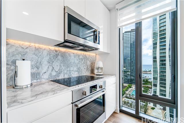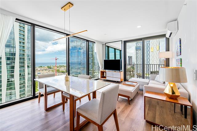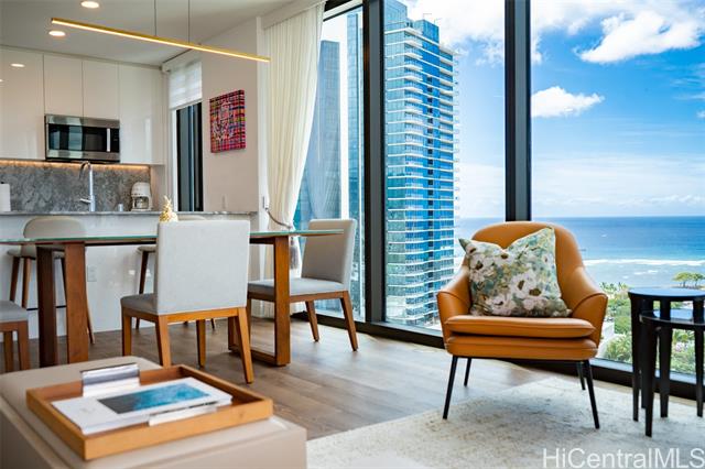 experience luxury living at a'ali'i, where ocean views greet you the moment you enter. the rectangular shape “01” stack offers the only corner 2-bedroom, 2-bath units with floor to ceiling windows, allowing you to enjoy stunning views from the living room, kitchen and bedrooms. this fully furnished turnkey home designed by rottet studio includes its own 37 sq ft storage room on the 22nd floor, an ev charger equipped parking with extra overhead storage, an upgraded toto washlet, two walk in customized closets, bosch appliances, and blackout shades in both bedrooms. a wide range of amenities including an outdoor sky deck, spacious gym, yoga room, bbq areas, large pool and jacuzzi, event rooms, are all extensions of your living space. a'ali'i represents luxurious, sustainable, and well-designed living in one of the most sought-after locations at ward village in honolulu. -