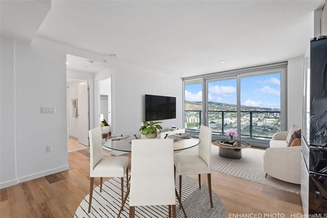 brand new listing!! liona 3607 at the park on keeaumoku offers a stunning one-bedroom residence with a private lanai - diamond head view and sunrise, perfect for enjoying honolulu's urban landscape. this unit features an open-concept living area with luxury vinyl plank flooring and floor-to-ceiling windows that maximize natural light and views. the kitchen is designed with quartz countertops, modern plumbing fixtures, and sleek stainless steel appliances, making it both functional and stylish. the bedroom is a cozy retreat with carpeted floors for comfort, while the bathroom is equipped with quartz countertops, modern fixtures, and led medicine cabinets. a quiet, energy-efficient split ac system ensures a comfortable climate throughout the home. the building provides resort-style amenities including an infinity pool, spa, movie theater, fitness center with a sauna and yoga room, and private bbq pavilions. with 24/7 security, secured covered parking, bike storage, and ev charging stations, this pet-friendly unit is an ideal blend of luxury, convenience, and modern living. don't miss this great opportunity!!! a few photos have been virtually staged(enhanced). -