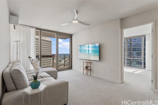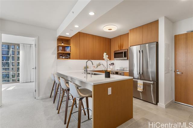 in a city full of new towers, sky ala moana west offers something rare, a luxury residence offering a peaceful retreat in the heart of honolulu. unit 1801, the premium “01” corner stack, offers blue ocean and city views through floor-to-ceiling windows, filling every room with light and inspiration. this 2-bed, 2-bath home is crafted for both beauty and function, featuring bosch stainless steel appliances, quartz countertops, primary bathroom soaking tub, a walk-in closet, custom tailored drapery, and two covered parking stalls with storage. but what truly sets sky ala moana apart is a healthy lifestyle at your fingertips: unwind in one of honolulu's most expansive resort-style amenity deck with a pool, dedicated lap pool, spa, cold plunge, saunas, dog park, bbq cabanas, and party rooms, plus on-site dining at sera hawaii and michelin recognized korean restaurant, okdongsik. all within close proximity to ala moana center and ala moana beach park. at sky ala moana you don't just buy a condo, you claim a vibrant, connected way of living that blends luxury, convenience, and wellness. -