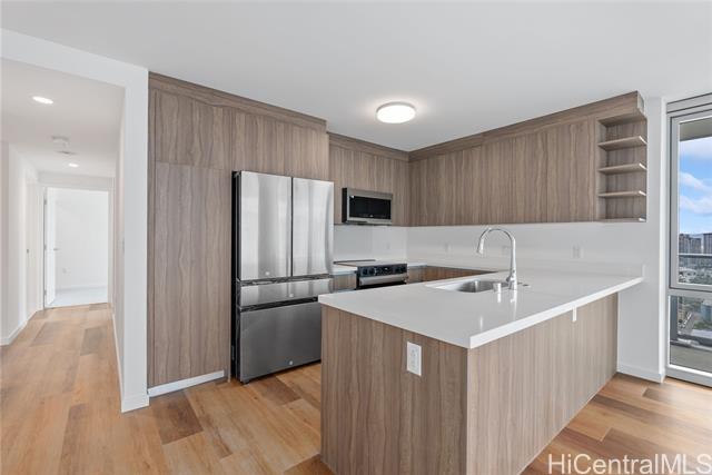 priced to sell!!! the park on keeaumoku's liona tower #3718 is a brand-new 3 bedroom, 2 bath residence with 1,147 sf interior and a rare l-shaped wraparound lanai (186 sf) showcasing 270° views—south shore ocean toward ala moana, the full ewa coastline, mountains, sunsets, and even eastward toward uh with a peek of koko head. situated high on the preferred 18 stack, this home is one of only 40 3-bedroom/2-bath units across both liona and rycroft towers, underscoring its rarity and value. the open layout features floor-to-ceiling windows and luxury vinyl plank flooring that maximize light and views. the kitchen offers quartz countertops, stainless steel appliances, and designer fixtures, while bedrooms include plush carpet. bathrooms are finished with quartz and led medicine cabinets. a quiet, efficient split ac provides year-round comfort. pet-friendly and secure, the building offers resort-style amenities: infinity pool, spa, movie theater, fitness center with sauna and yoga room, bbq pavilions, landscaped decks, 24/7 security, covered parking, bike storage, and ev charging. a few photos have been virtually staged(enhanced). -