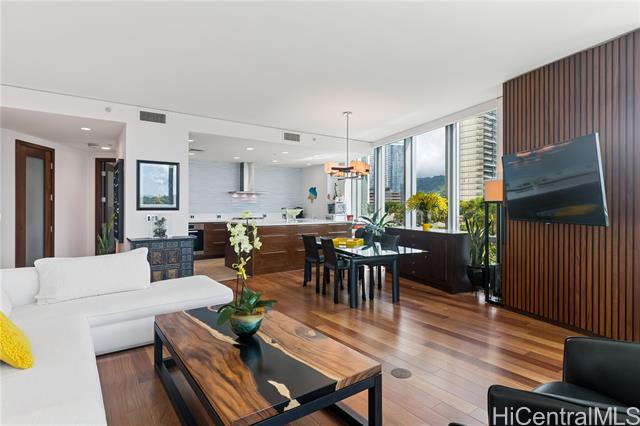 welcome to hokua , honolulu's crown jewel of luxury condominium living. since its debut in 2006, hokua has stood as a beacon of elegance, sophistication, and modern comfort in the heart of kaka‘ako. it offers the best of both worlds—resort-style amenities and the privacy of a single-family home—all within one of the most coveted addresses on the island. apt. 5g is a rare gem, having the interior totally gutted and upgraded, every detail has been meticulously curated to enhance comfort, functionality, and aesthetic appeal: hardwood floors and new custom doors throughout, modern kitchen, custom cabinetries and even a new central a/c system, offering 1,620 square feet of gracious living. from the moment you step into the entry foyer, you'll feel the ambiance of a private home. the layout is ideal for those seeking both openness and privacy: the two bedrooms are separated by a long hallway, ensuring quiet retreats for each occupant. the views from your living room are nothing short of breathtaking with the lush greenery of ala moana beach park and the ocean beyond. one of the unit's parking stalls has a dedicated ev charging station it will awe the most discerning buyers. -
