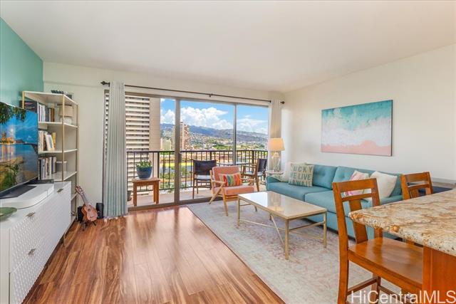 $10k seller's credit to buyer for an acceptance offer by 11/2/2025. experience elevated living in this stunning high-floor unit, located on the coveted cooler side of the building. revel in breathtaking views of vibrant city lights, the majestic mountain range, gorgeous rainbows, and the serene ala wai canal. this well-maintained, move-in ready condition 1-bdrm, 1-bath residence features an upgraded kitchen and flooring, complemented by an efficient open floor plan. enjoy the spacious lanai, ideal for relaxation at golden hour. modern conveniences include central ac, an in-unit washer/dryer, and a separate storage locker. four paddle is a highly regarded, pet-friendly, secure high-rise known for its low-key charm. the 5th flr. boasts a fantastic recreation area with a large heated pool, expansive sundeck, jacuzzi, sauna, bbq facilities, and outdoor dining area. with your own assigned parking space and 6 guest parking spots, hosting visitors is a breeze. located just a short distance from the world-famous waikiki beach and steps away to bus lines, shops, and eateries. the maintenance fee covers all utilities. -