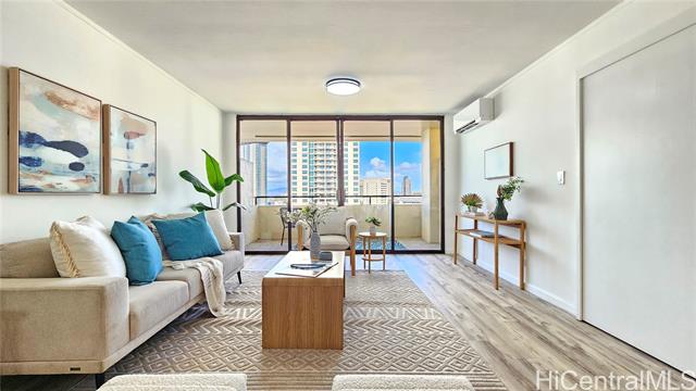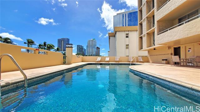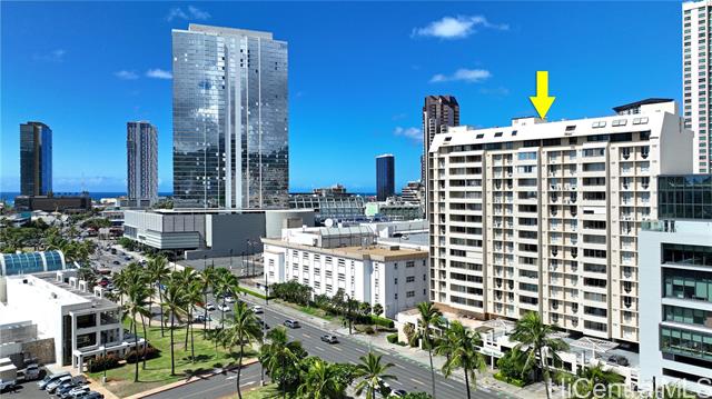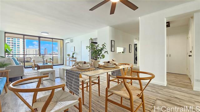 "experience penthouse living in this single-level unit offering sweeping mountain, city, and partial ocean views. thoughtfully updated, the home features a new refrigerator, microwave, stove, washer, dryer, and brand-new split air conditioning in every room. two beautifully renovated bathrooms include both a shower and a tub. custom lighting enhances every space. positioned on the quiet side of the building, this residence combines comfort with unbeatable convenience. step across ward avenue to enjoy blaisdell center's concerts, theatre, sports, and weekly farmers markets. stroll to thomas square park and the honolulu museum of art or explore the growing neighborhood with exciting new restaurants and shops on the way. just minutes from ala moana shopping center, the beach, a movie complex, and the state's largest whole foods. a planned rail station nearby adds future value. amenities include locked storage for surfboards and bikes, plus gated parking with a stall right by the lobby." -