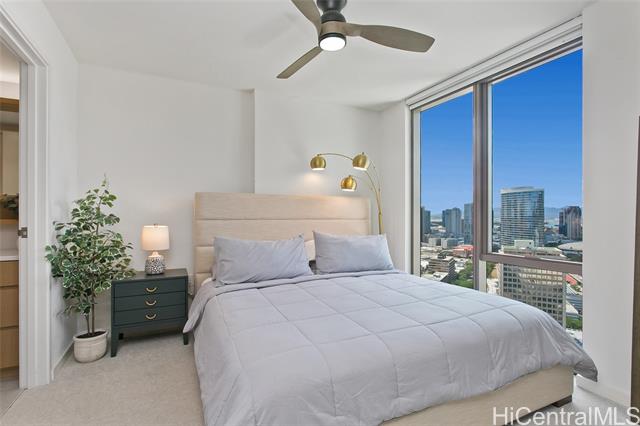 sky ala moana is one of honolulu's new two tower developments, and it's the first of its kind in hawaii with one tower having a world renowned renaissance marriott hotel and the other tower the sky ala moana residences. the synergy this provides is unparalleled with the opportunity to enjoy resort like amenities while having the comfort of your two bedroom, two bathroom condo. this high floor unit features 2 custom walk-in closets, large entry storage closet, silestone quartz countertops, bosch appliances, full size wash/dryer, split ac in each room, ceiling fans, floor to ceiling glass in all rooms, 96 square foot open air lanai which allows for breathtaking views of the city, ocean, mountains and sunsets. the convenience of two side by side, gated parking stalls plus storage. the 8th floor amenity deck is one of the largest in honolulu. this oasis in the sky consists of two heated salt water pools. one being a 25 meter lap pool and the other is one of honolulu's largest residential pools. enjoy the full service renaissance marriott pool bar, spa's dry&wet sauna, furo, cold plunge, indoor/outdoor gym, 4 hot tubs, bbq cabanas, party rooms and kids play areas. & amazing location! -