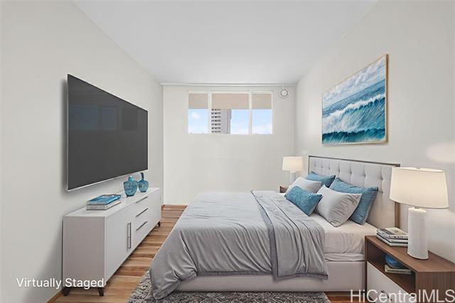corner residence in the ala moana area with sweeping views of the ocean and city skyline. this 2-bedroom, 1-bath home offers a bright and functional layout with windows on multiple sides to capture natural light and breezes. the unit has been partially renovated, providing updated finishes while allowing room for your personal touches. positioned to take advantage of the surrounding scenery, the living spaces open to panoramic vistas that can be enjoyed day or evening. the central location places you near ala moana center, beaches, dining, and entertainment, with easy access to waikiki and kaka?ako. a rare opportunity to own a corner unit with ocean and city views in one of honolulu's most convenient neighborhoods! -
